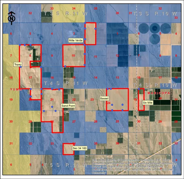 Excellent Arizona desert farm opportunity. This farm consists of 4,516 acres with 29 irrigation wells and two domestic wells, electric and natural gas services. The farm is not fully developed, the plan called for 3,728 acres of subsurface drip irrigated farmland. Located within Hyder Valley north of I-8 and the Gila River between Gila Bend and Yuma.