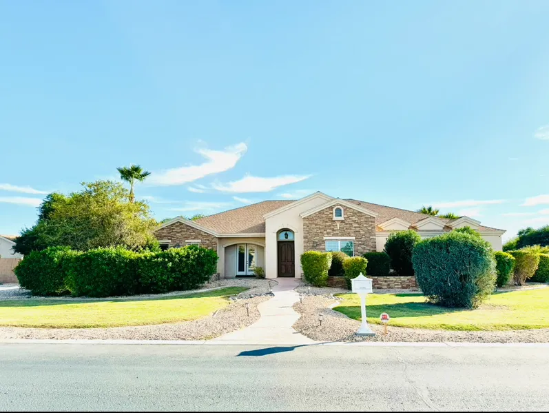 One in a Million! Rare find in Yuma. Custom Basement Home, features 8 bedrooms, 4 on main level, 4 in basement. Fall living upstairs and down plus separate kitchen, laundry, rooms, storage galore! 4 car garage, concrete basketball court, pergola, outdoor fireplace, huge pool, gardeners "shed" is a separate, air conditioned 2 car garage. Nearly fully fenced 2 acres and lush landscape.