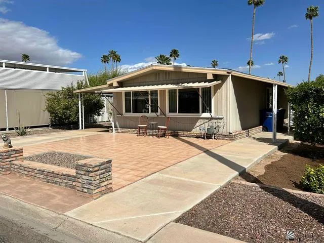 Nestled in the serene Palm Desert Mobile Estates, this beautiful remodeled and redecorated 2 bedroom 2 bath home boasts the following recent upgrades and features: New shingle Roof and Water Softener in 2025, new furniture and TV in living and bedrooms, and both bathrooms and kitchen have been upgraded. A highlight is the custom glassed-in sunroom adds extra living space year round but also doubles as a one-car garage with custom doors that unfold to allow the car to be stored for the summer months. Outside, fruit trees abound with orange, lemon and tangerine, all in spring bloom! An extra large shed also doubles as a workshop for hobbies and storage. Its priced attractively and move in ready!