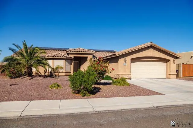 This beautiful corner lot features a 3-bedroom, 2-bathroom pool home with a 2-car garage and stunning landscaping, complete with an installed watering system. Inside, you'll be greeted by vaulted ceilings and spacious living and dining areas. The kitchen is fully equipped with a gas stove, granite counters, and an island with a breakfast bar, making it perfect for entertaining. The main suite offers a walk-in closet, a walk-in shower, and a relaxing garden tub. Plus, the backyard is an oasis with a covered patio and a refreshing and heated pool , ideal for year round enjoyment! Notably, this home comes with paid solar with a new inverter, along with a new tankless water heater and remote-controlled blackout blinds.