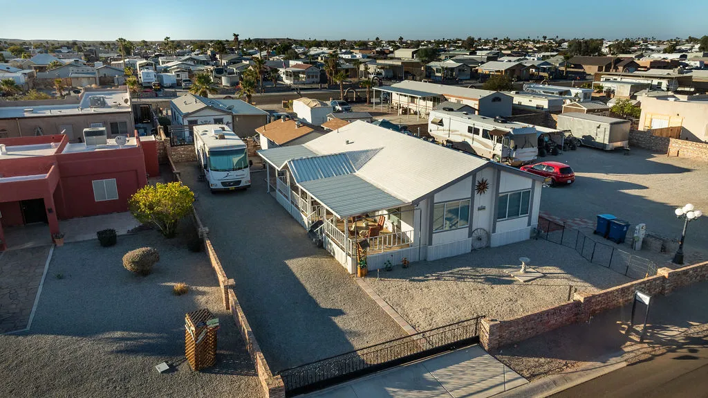 Rare, move in ready, 2 bedroom, 2 bath double wide, on a 13,554 sq ft double lot, with a 330 sq ft detached garage with a 3/4 bath and a storage shed. Home has been repainted as well as the cabinets. Roof was just coated in 2025, and AC was just recently serviced. Home is 2X6 construction, tape and textured throughout. Large covered patio with views of the Gila Mountains. Great place to park all of your toys, rent out RV spaces or even build a large shop. RVS zoning allows multiple possibilities.