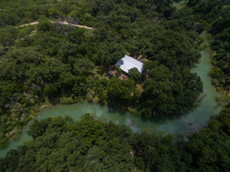 Improvements: A 3,200 sq/ft home overlooks the Nueces River, which is known as the Tree House. It has a large living area with 2 bedrooms, 1 bath and a utility room. The tree house has a new metal roof, windows and drop ceiling. There is a relaxing outdoor porch for grilling, to socialize or entertain, and enjoying the view of the river. There is a 10,000 sq/ft air plane hangar and a 7 stall horse barn located close to the tree house. The Tree House has multiple protein feeders, corn feeders and blinds. Also, provides cleaning station with cooler and storage room conveniently located close to the main house.