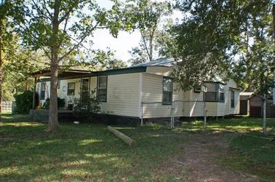 This camp in made of of two single wide manufactured homes that are joined with an add on living room. The kitchen was left in one of the mobile homes and the other mobile home contains 3 berooms, laundry area, and a second living area. The camp also has an attached screened in porch with a hot tub and a deck for grilling. There is a storage shed toward teh back of the porperty and also a slabbed parking spot for RVs or a boat. The property is fully fenced and it about 4 miles from the boat ramp.