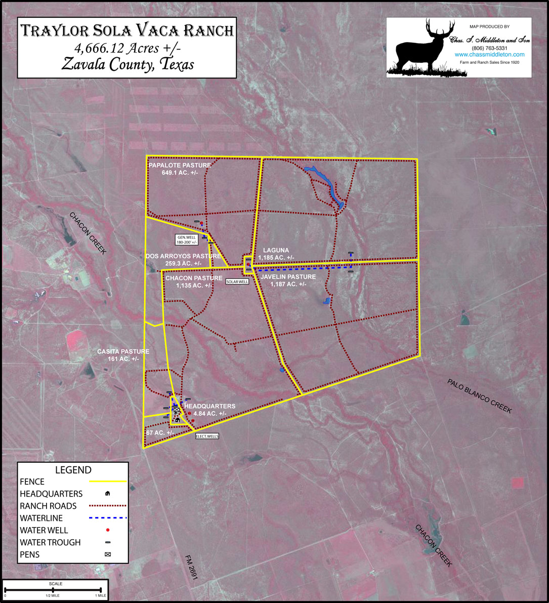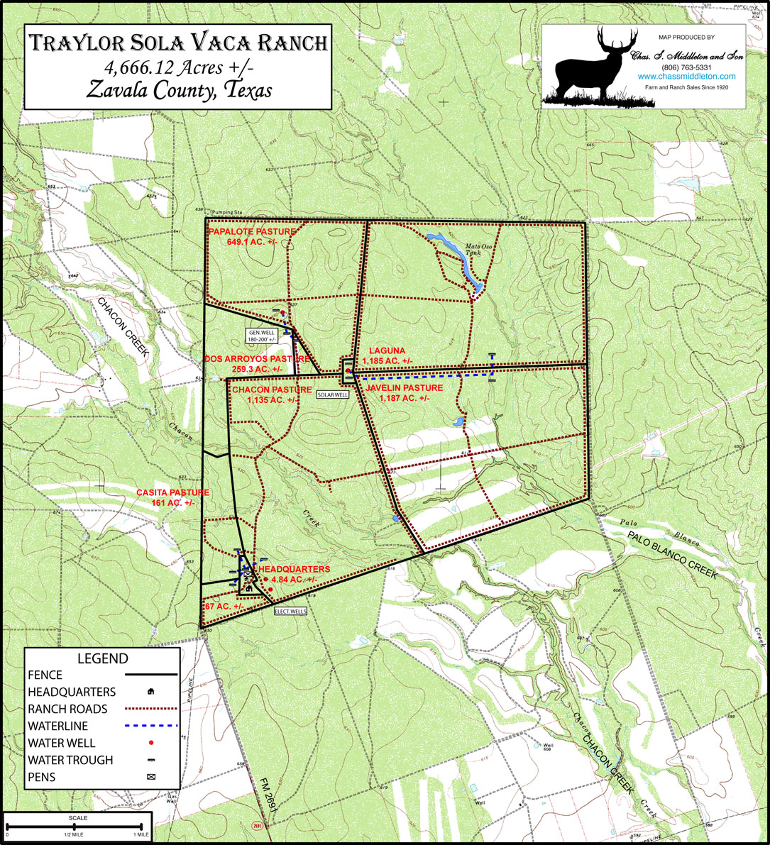 Terrain: The terrain is fairly level to gently sloping with productive creek bottoms. Brush cover is dense with scattered open areas. Medium and large mesquite comprise the main canopy, with other vegetation being live oak, blackbrush, guajillo, sumac and ceniza. Productive sandy loam and clay loam soils.